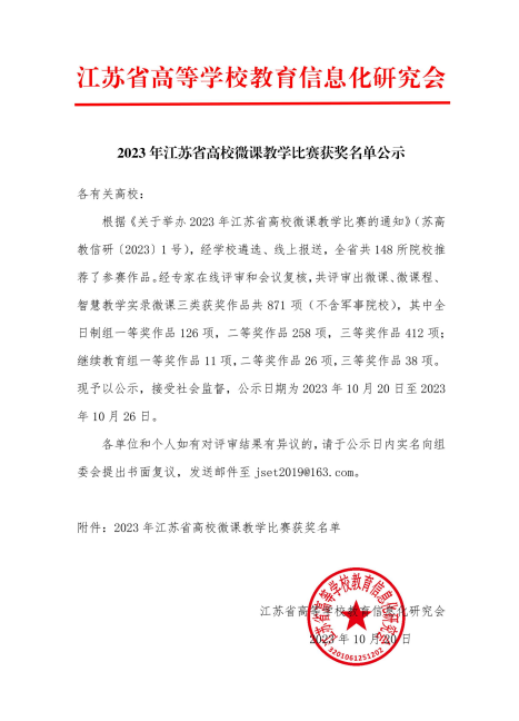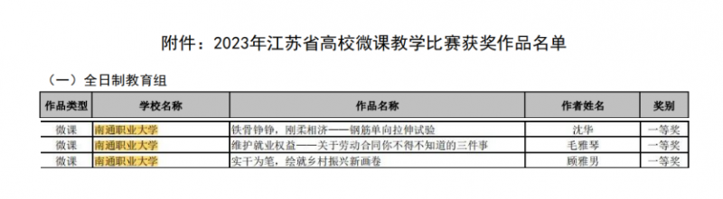 近日,2023年江苏省高校微课教学比赛结果揭晓,公司毛雅琴老师报送的作品《维护就业权益——关于劳动合同你不得不知道的三件事》荣获一等奖。