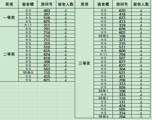 根据《BETVLCTOR伟德国际1946文明宿舍大赛评比方法》,根据宿舍平时卫生情况和现场打分相结合,已选定以下50个宿舍为本次2023-2024学年第一学期文明宿舍,根据文件要求,现予以公示。