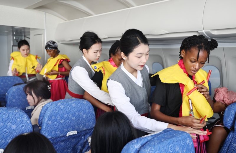 他们展示了如何正确地进行安全检查、使用各种设备、处理紧急情况以及提供高质量的客户服务。现场还模拟了飞机起飞和降落时的安全指示,让在场的每个人都了解到了空乘的工作并非只有美丽和优雅,更有责任和专业。