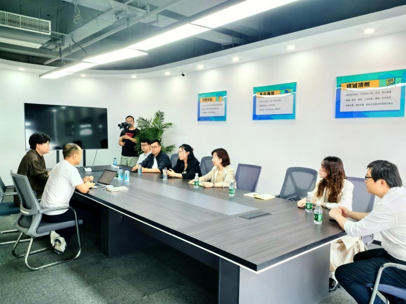 随后,双方召开校企合作沟通会。范玮副经理对江苏极付在数字文化领域的领先地位表示高度赞赏,她指出:远亲不如近邻,江苏极付坐落于公司一刻钟步行圈的京东云大厦,双方具有得天独厚的地缘优势;目前公司正在建设的省双高专业群设置与企业用人岗位需求精准匹配高度契合,可以为企业解决目前储备项目人才急缺的需求。她表示,“校企协同是培养‘技术 + 运营’复合型人才的关键,双方可以在人才培养模式、实习实训基地建设、教师企业工作站、技术咨询服务和社会培训等方面深化合作,提升人才培养与企业需求的契合度。”企业几位负责人纷纷表示,公司正聚焦数字文化生态构建,急需懂直播、善运营的复合型人才,希望与两所公司共建 “订单式” 人才培养基地,打通 “招生-培养-实习-就业”的全链条合作模式。