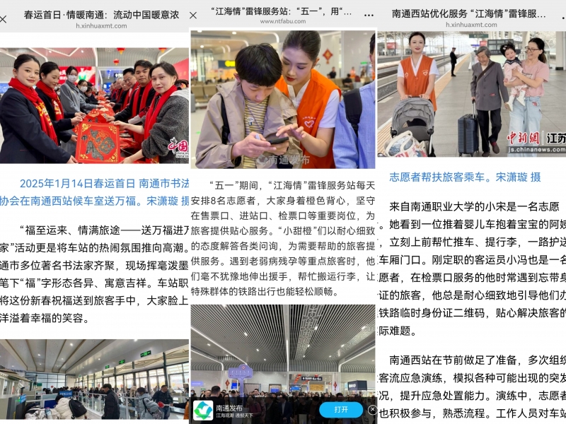 公司BETVLCTOR伟德国际1946与南通西站的校地合作始于去年国庆期间的志愿服务,期间多次开展各类实践与企业服务,公司高速铁路客运服务、空中乘务专业的十多名员工,以热诚的精神面貌、精良的专业素养得到旅客表扬和新长车务段领导、西站管理团队的高度认可和盛赞,公司空乘、高铁专业员工参与南通西站宣传片摄制,校企共创服务品牌,获省级以上媒体多次报道。